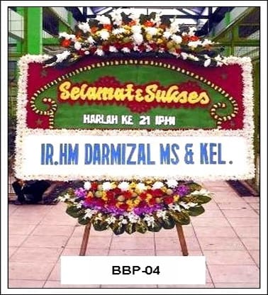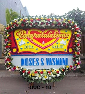 Karangan bunga papan di atas tidak begitu jauh berbeda dengan karangan bunga papan selamat menempuh hidup baru dari segi bentuk, warna dan bunga yang digunakan.